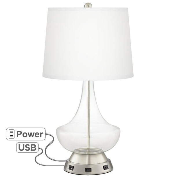 360 lighting modern table lamp with dimmable usb and ac power outlet workstation base fillable clear glass nickel for living room. By globe electric (9) project guide. Modern, vintage, floral, outdoor, shag, morrocan, animal 5% coupon applied at checkout. Sold and shipped by lamps plus.